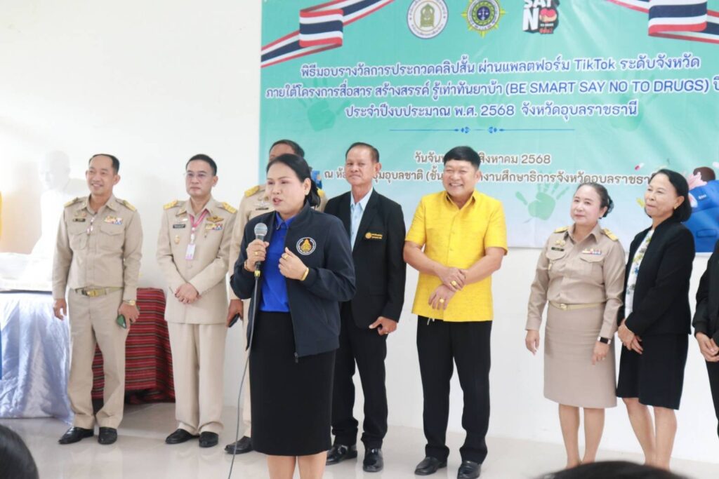 วันที่ 18 สิงหาคม 2568 เวลา 13.30 น. นางจารุวรรณ บุญโต ผู้อำนวยการ สพม.อุบลราชธานี อำนาจเจริญ พร้อมด้วยนายปิยะวุฒิ ศรีชนะ รองผู้อำนวยการฯ ได้ร่วมเป็นเกียรติในพิธีมอบรางวัลการประกวดคลิปสั้นผ่านแพลตฟอร์ม TIKTOK ภายใต้โครงการ “สื่อสร้างสรรค์ รู้เท่าทันยาบ้า (BE SMART SAY NO TO DRUGS) ปีที่ 2” ซึ่งจัดโดยสำนักงานคณะกรรมการป้องกันและปราบปรามยาเสพติด (สำนักงาน ป.ป.ส.) ![]()