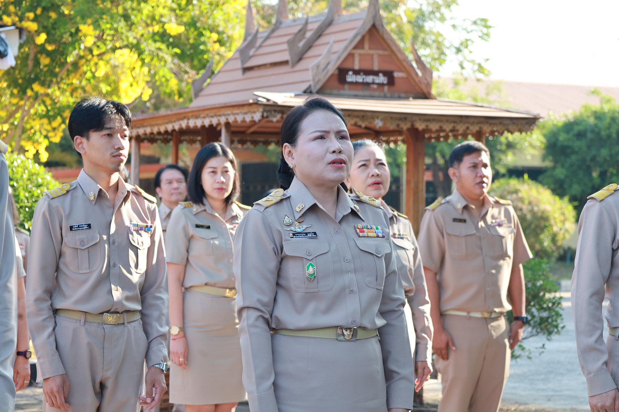 นางจารุวรรณ บุญโต ผู้อำนวยการสำนักงานเขตพื้นที่การศึกษามัธยมศึกษาอุบลราชธานี อำนาจเจริญ นำคณะผู้บริหาร ข้าราชการครูและบุคลากรทางการศึกษา พนักงานราชการ และลูกจ้างในสังกัด ร่วมกิจกรรมเสริมสร้างวัฒนธรรมองค์กรและวินัยหน้าเสาธง ณ บริเวณหน้าเสาธง สำนักงานเขตพื้นที่การศึกษาฯ เพื่อเป็นการเตรียมความพร้อมในการปฏิบัติงานเริ่มต้นสัปดาห์ใหม่ด้วยพลังบวก