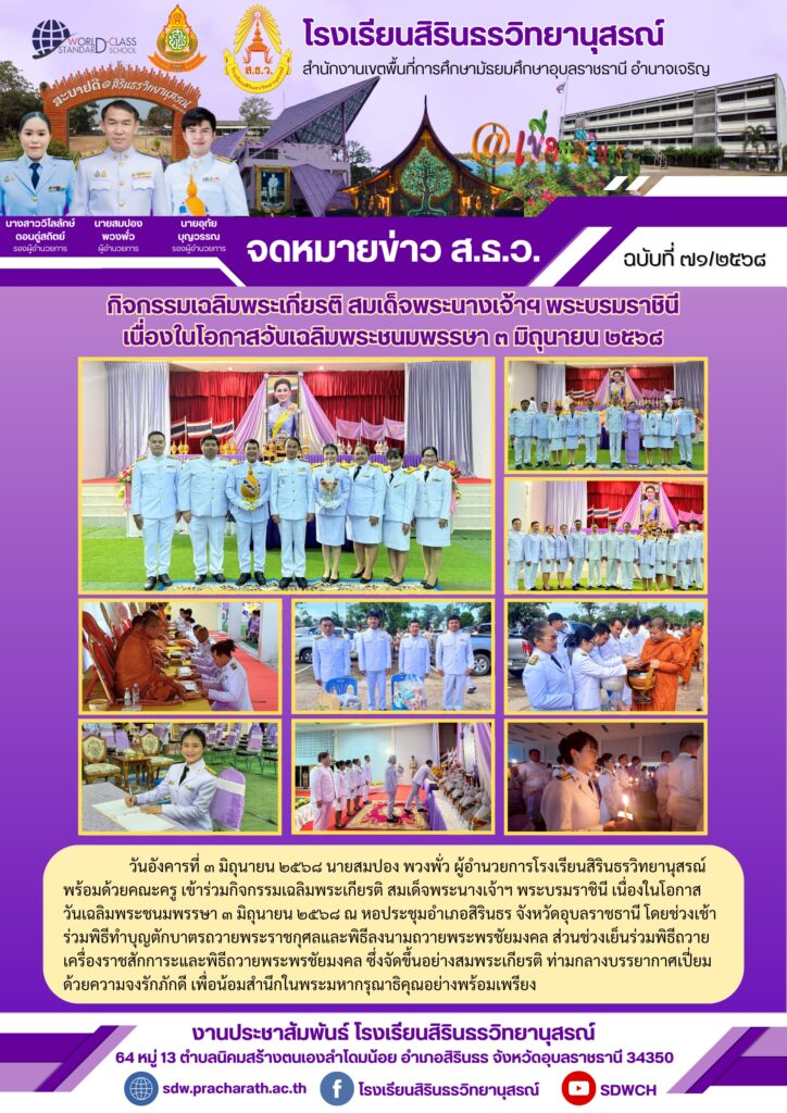 โรงเรียนสิรินธรวิทยานุสรณ์ วันที่ 3 มิถุนายน 2568
